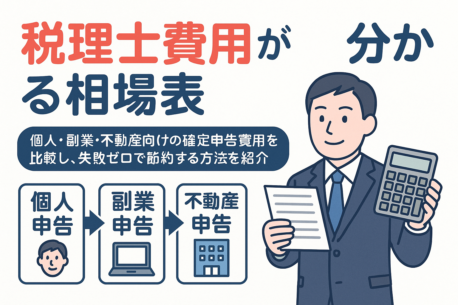 「税理士に頼むといくら?」——相場が分からず先延ばしにしていませんか。個人事業主の確定申告は申告のみで5万〜10万円、記帳代行込みで10万〜20万円が目安、会社員の副業申告は1万〜5万円が一般的です。売上規模や仕訳数、申告内容(白色/青色、医療費控除や不動産・株・仮想通貨の有無)で費用は大きく変わります。